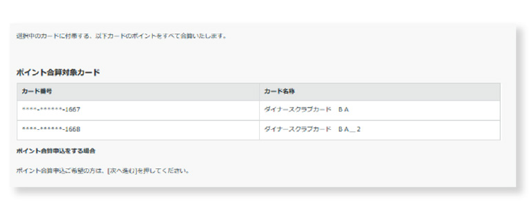 ポイント合算対象カードを確認し、