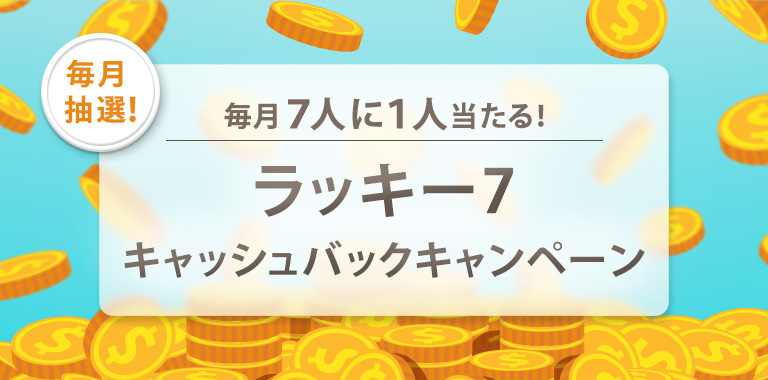毎月7人に1人当たる!ラッキー7キャッシュバックキャンペーン